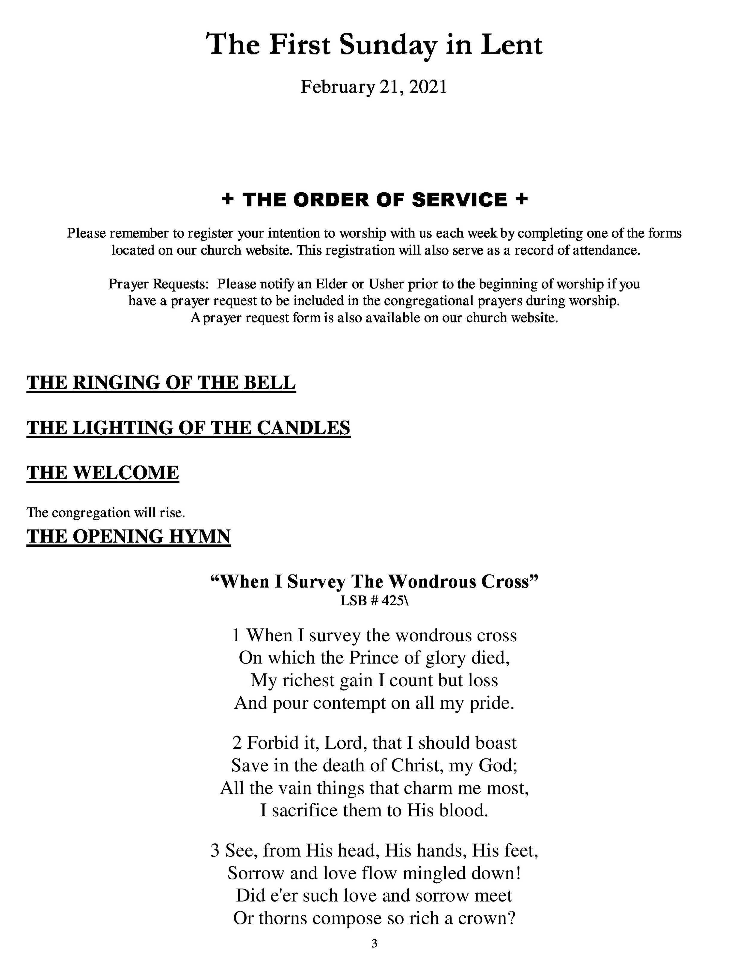 Teresa Ging February 23, 2021 Worship Bulletin - February 21, 2021 - 1st Sunday of Lent Teresa Ging February 23, 2021