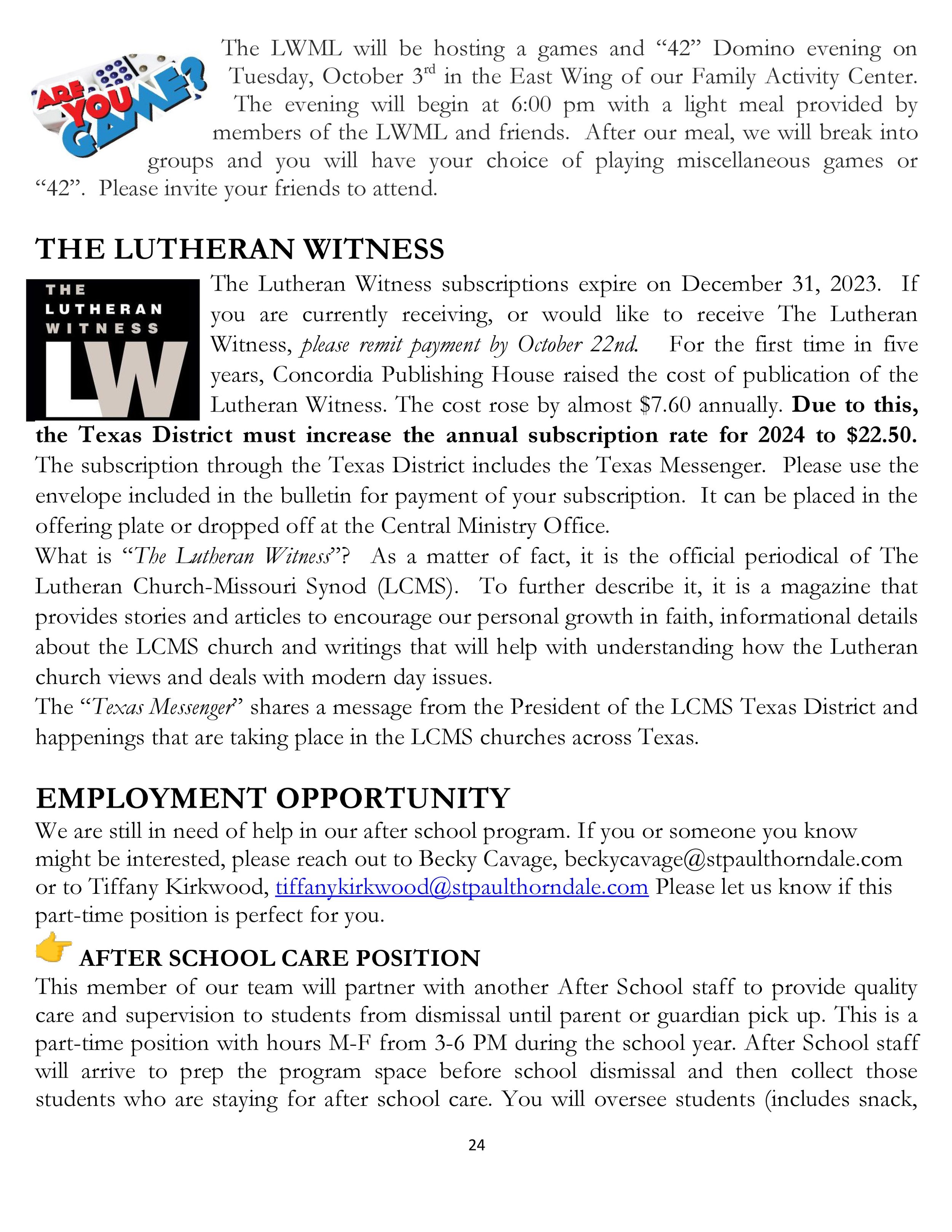 Teresa Ging October 2, 2023 Worship Bulletin and Announcements for September 24, 2023 - Seventeenth Sunday after Pentecost Teresa Ging October 2, 2023