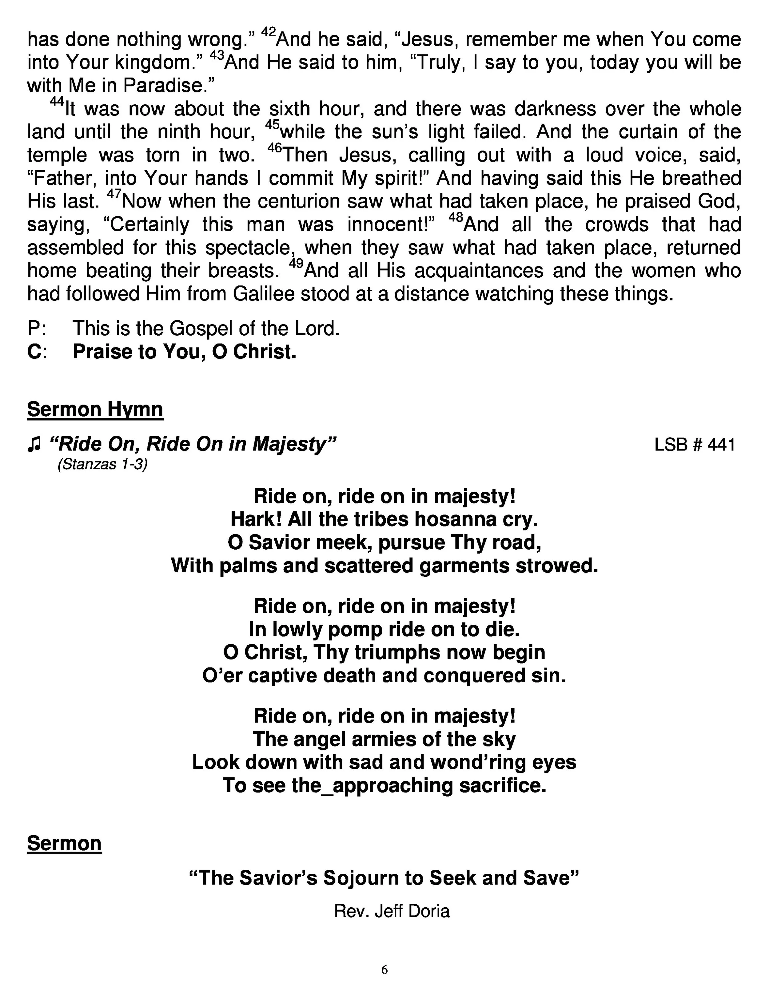 Teresa Ging March 23, 2024 Worship Bulletin and Announcements for March 24, 2024 - Palm Sunday, Sojourn with the Savior "To Seek and Save" Teresa Ging March 23, 2024