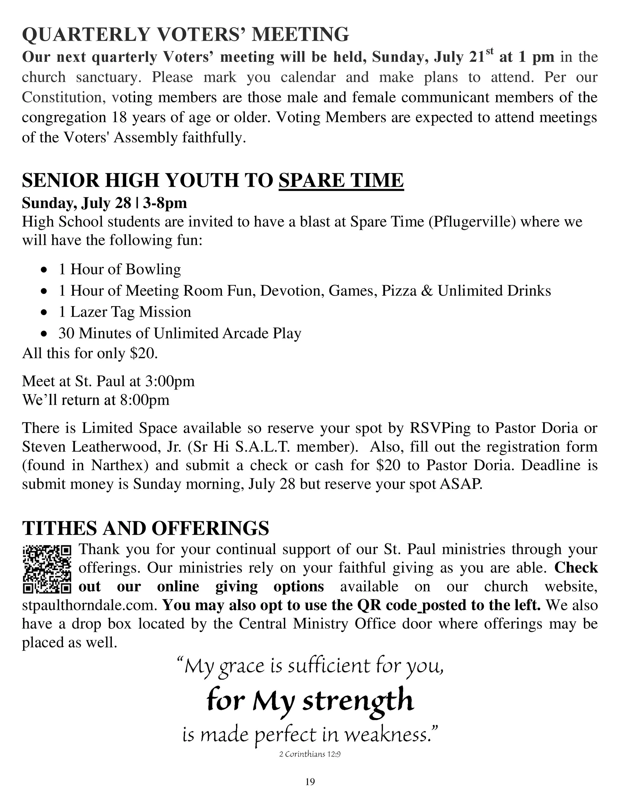 Teresa Ging July 5, 2024 Worship Bulletin and Announcements for July 07, 2024 - Mark 6, Mayhem Miracles and More - Seventh Sunday after Pentecost Teresa Ging July 5, 2024
