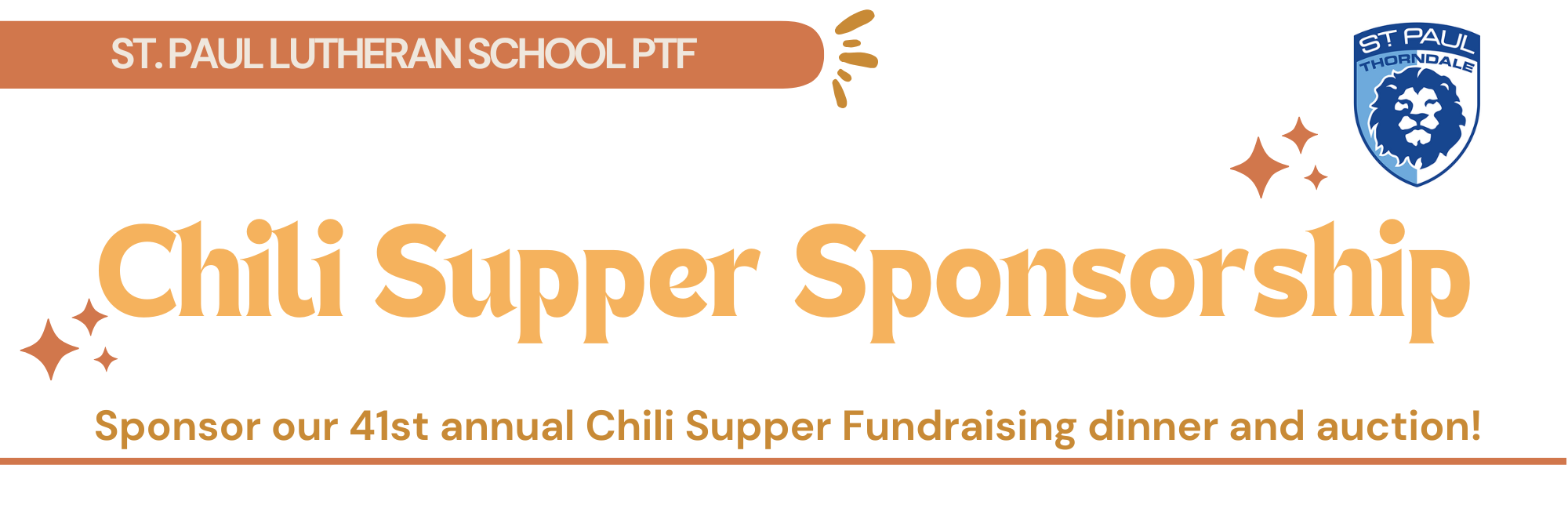 To ensure the success of our 41st Annual Chili Supper fundraiser, we are seeking sponsorships. By becoming a sponsor, you will not only help us achieve our goals, but also be recognized at the St. Paul Chili Supper attended by hundreds of St. Paul families and Thorndale community members. Thank you for considering this opportunity to support our Annual Chili Supper.